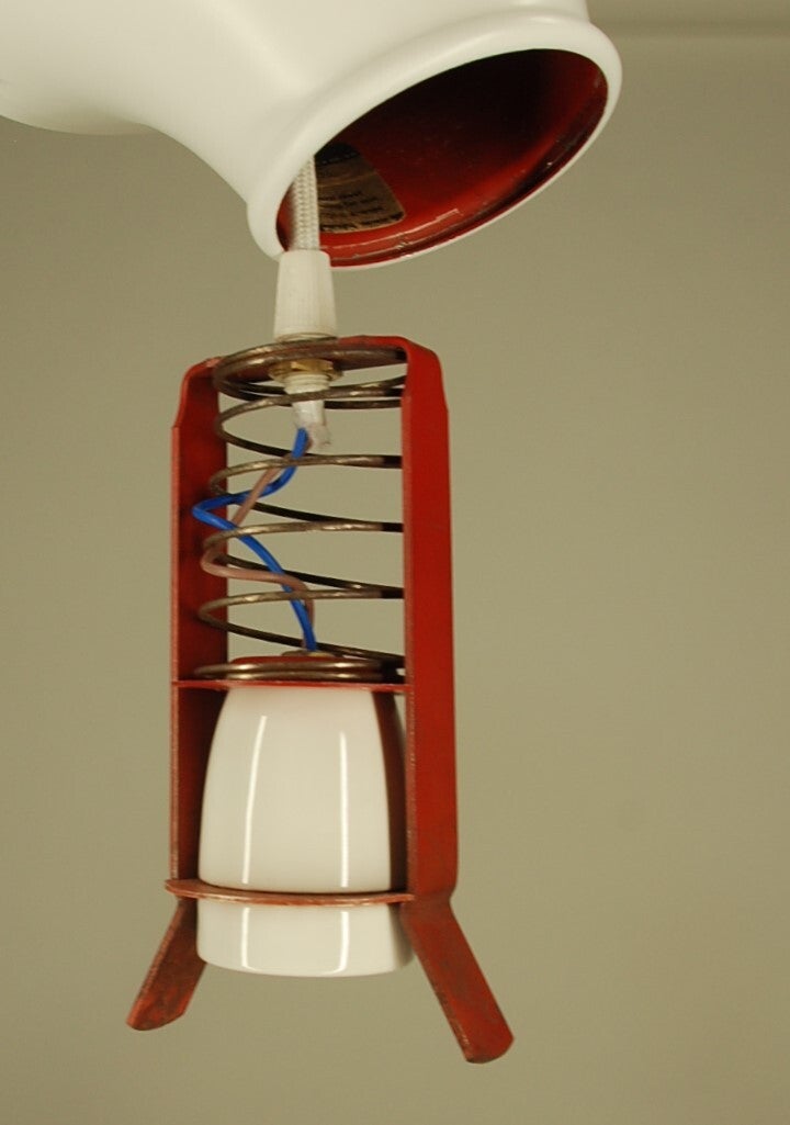 This lamp is equipped with the spring-fitting mechanism, which dates back to the 1930s and was also used in the Louis Poulsen Globe lamp.