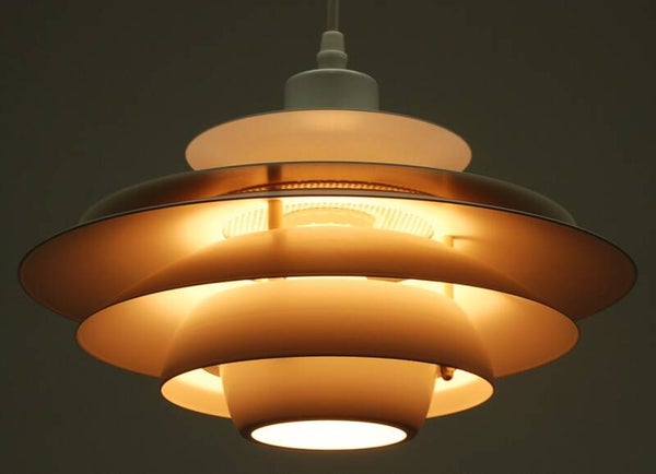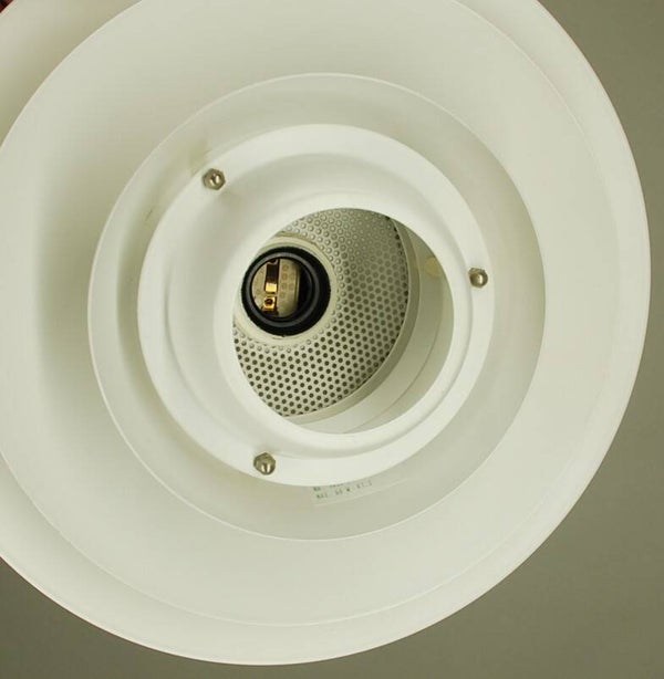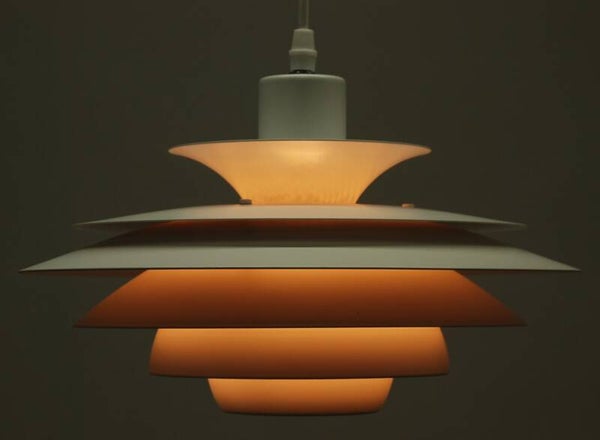 In very good, original condition, white pendant lamp by Jeka Metalryk, Denmark, 1980s.