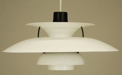 Louis Poulsen PH5 in Off white, big shade and anti glare in army green