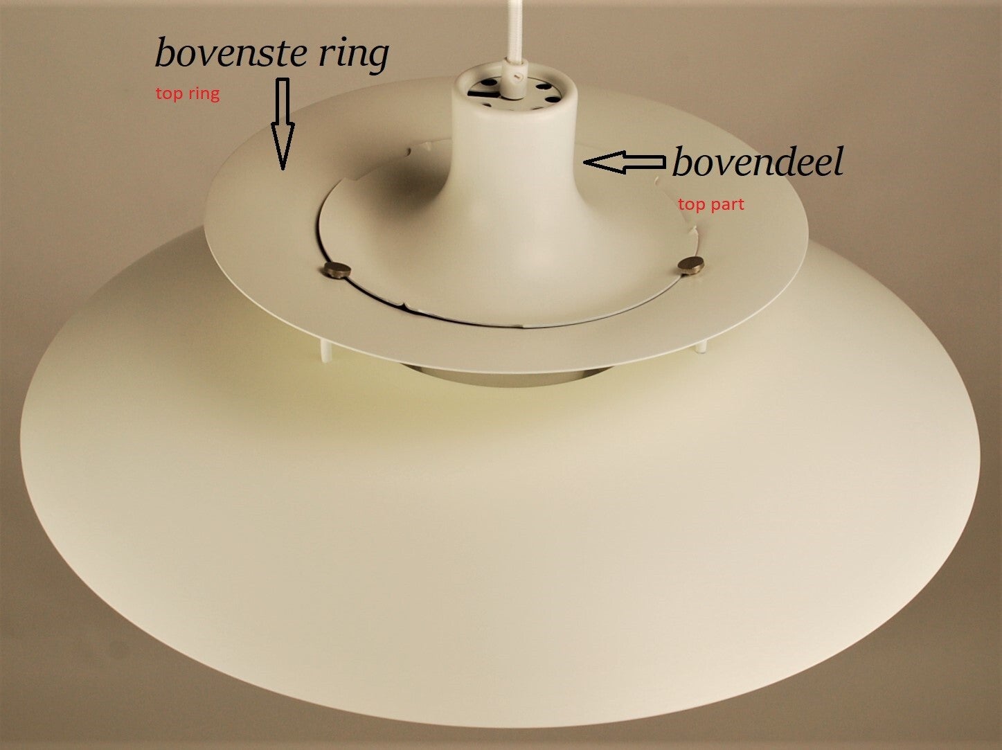 We can discuss small alterations like different color anti glare ring etc. For the name of the parts see photo's. (Click on the main photo showing the shelf with lamps).
