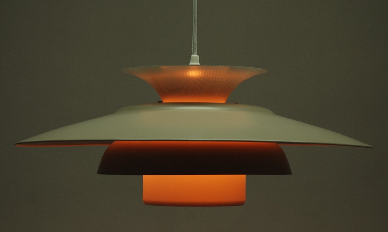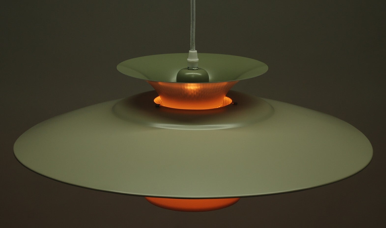 In good condition, a refurbished Danish pendant lamp in 4 shades of grey-green to sand to grey to light blue, of which the manufacturer is unknown (presumably Lyskaer), 1980s..