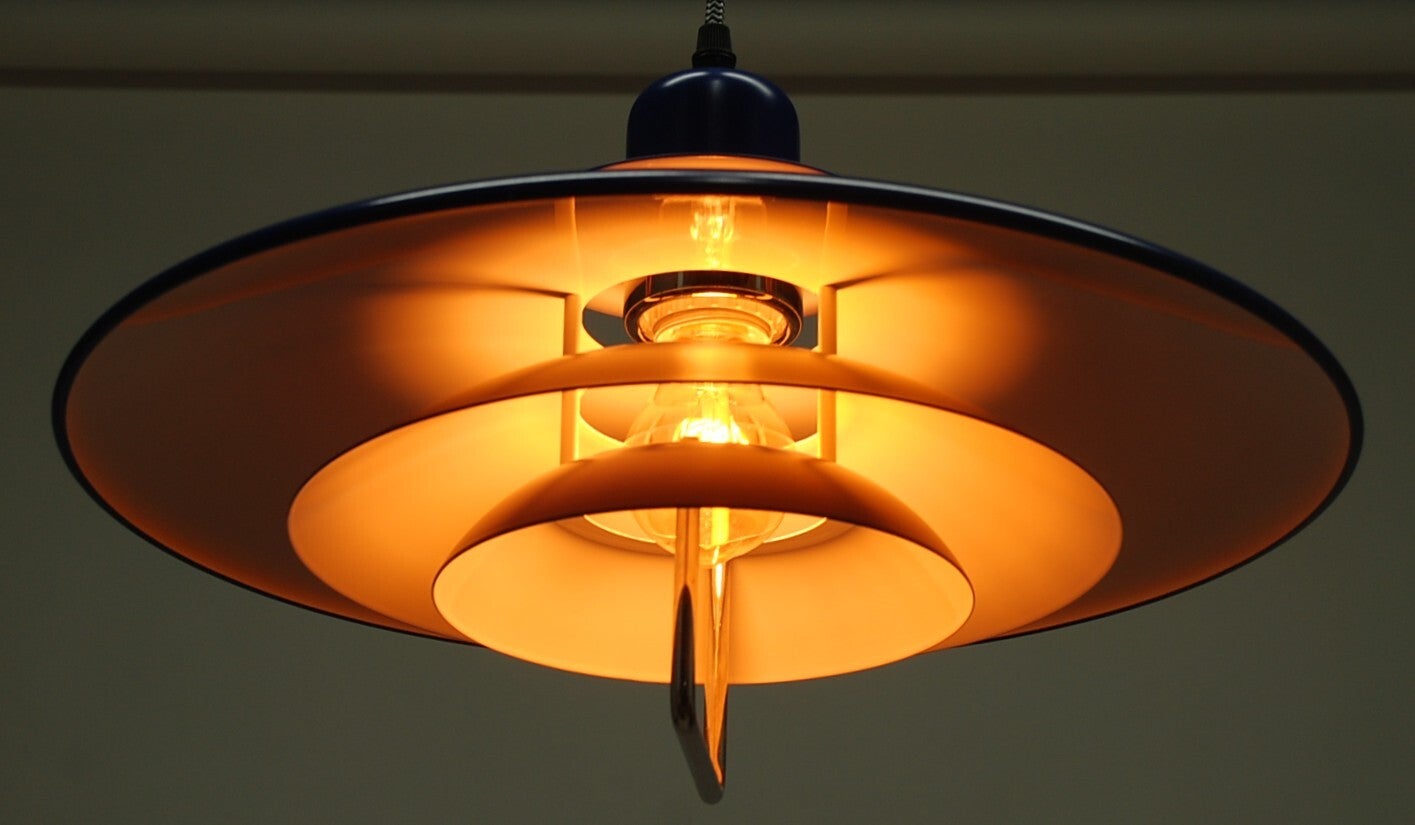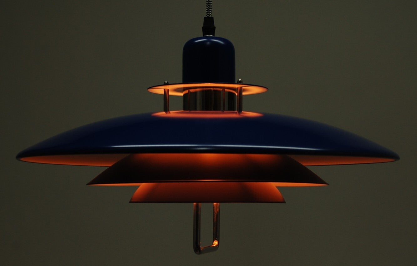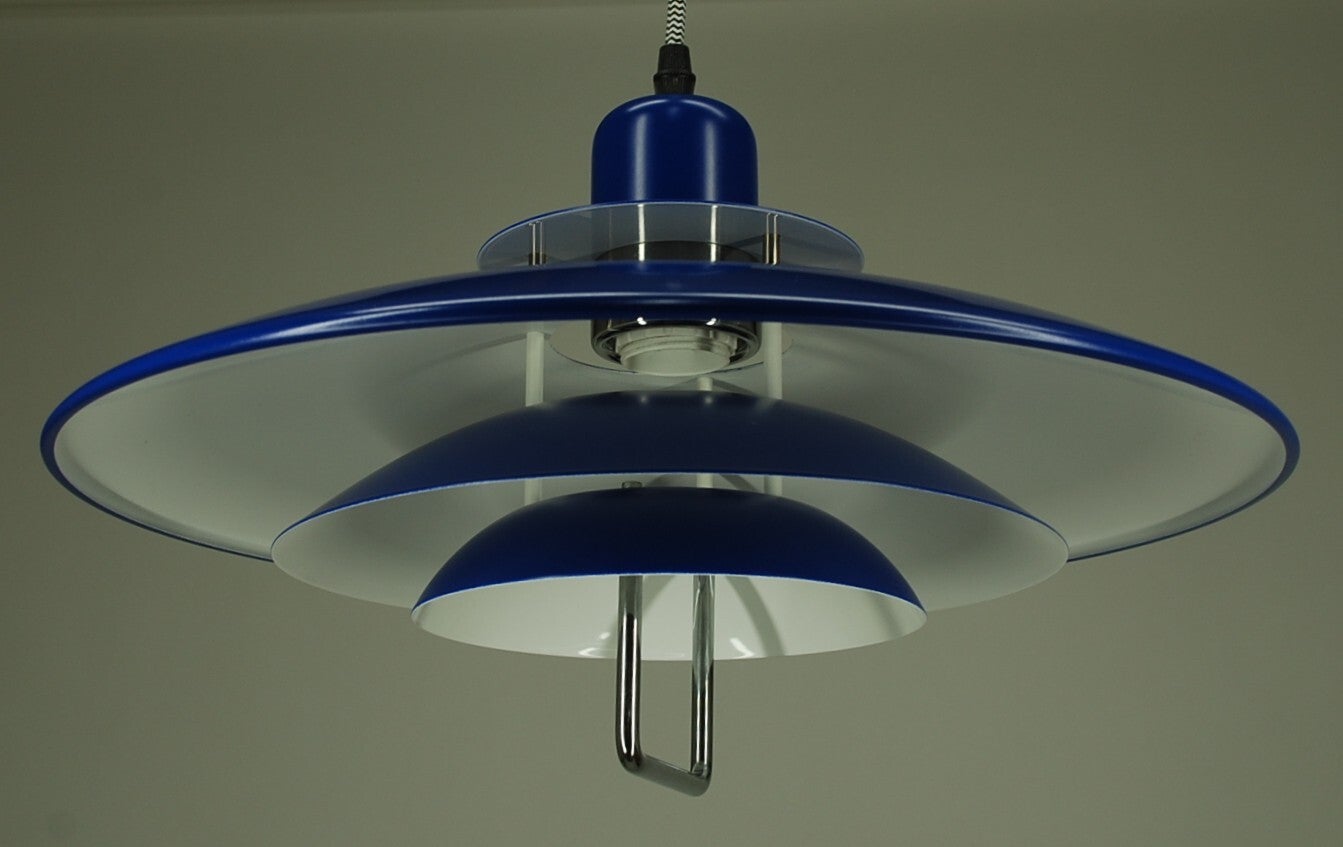 In very good condition, a refurbished Swedish pendant lamp by Belid in indigo.