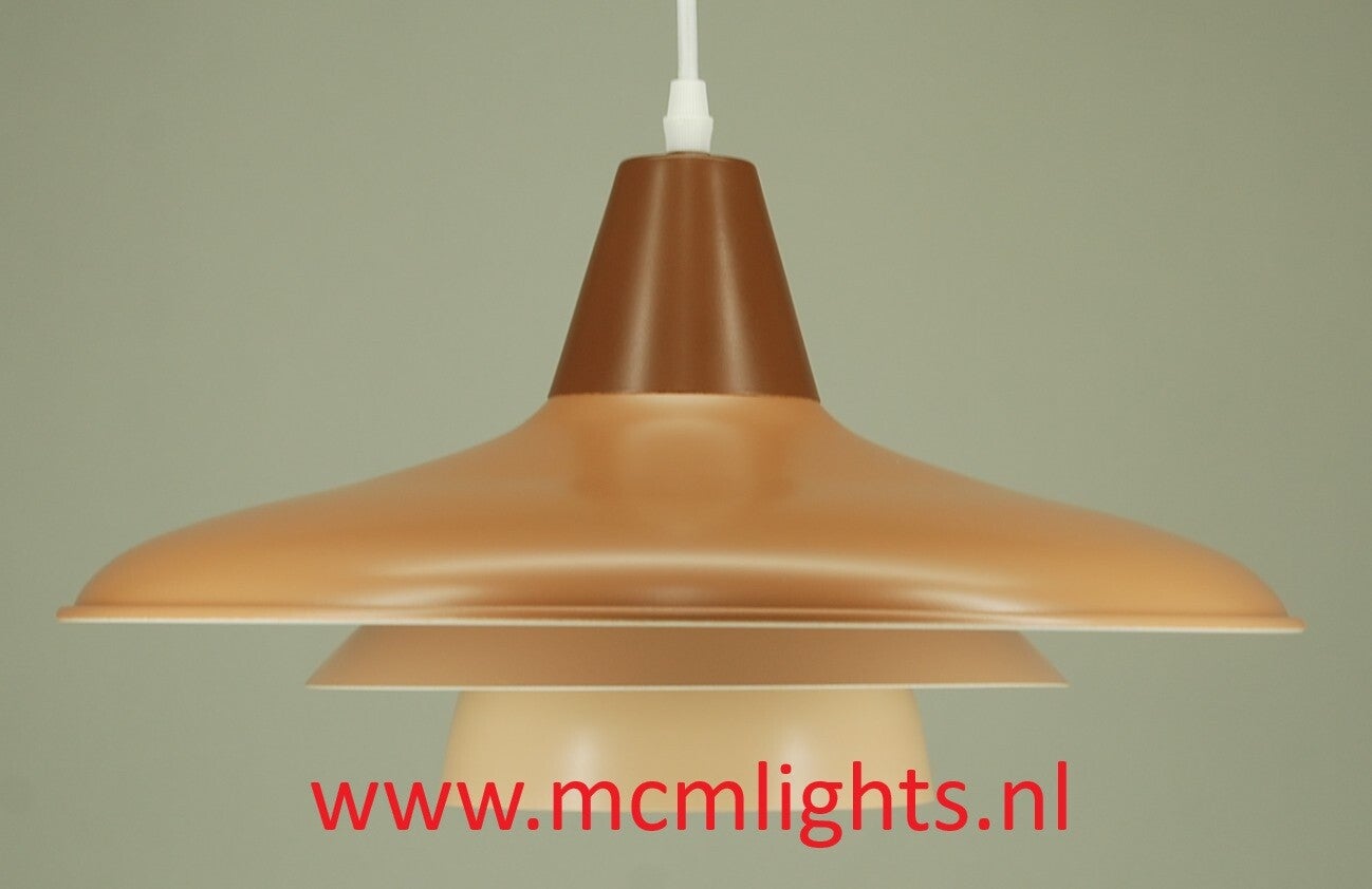 In very good condition, a refurbished pendant lamp in four shades of brown to beige, of which the manufacturer is unknown.